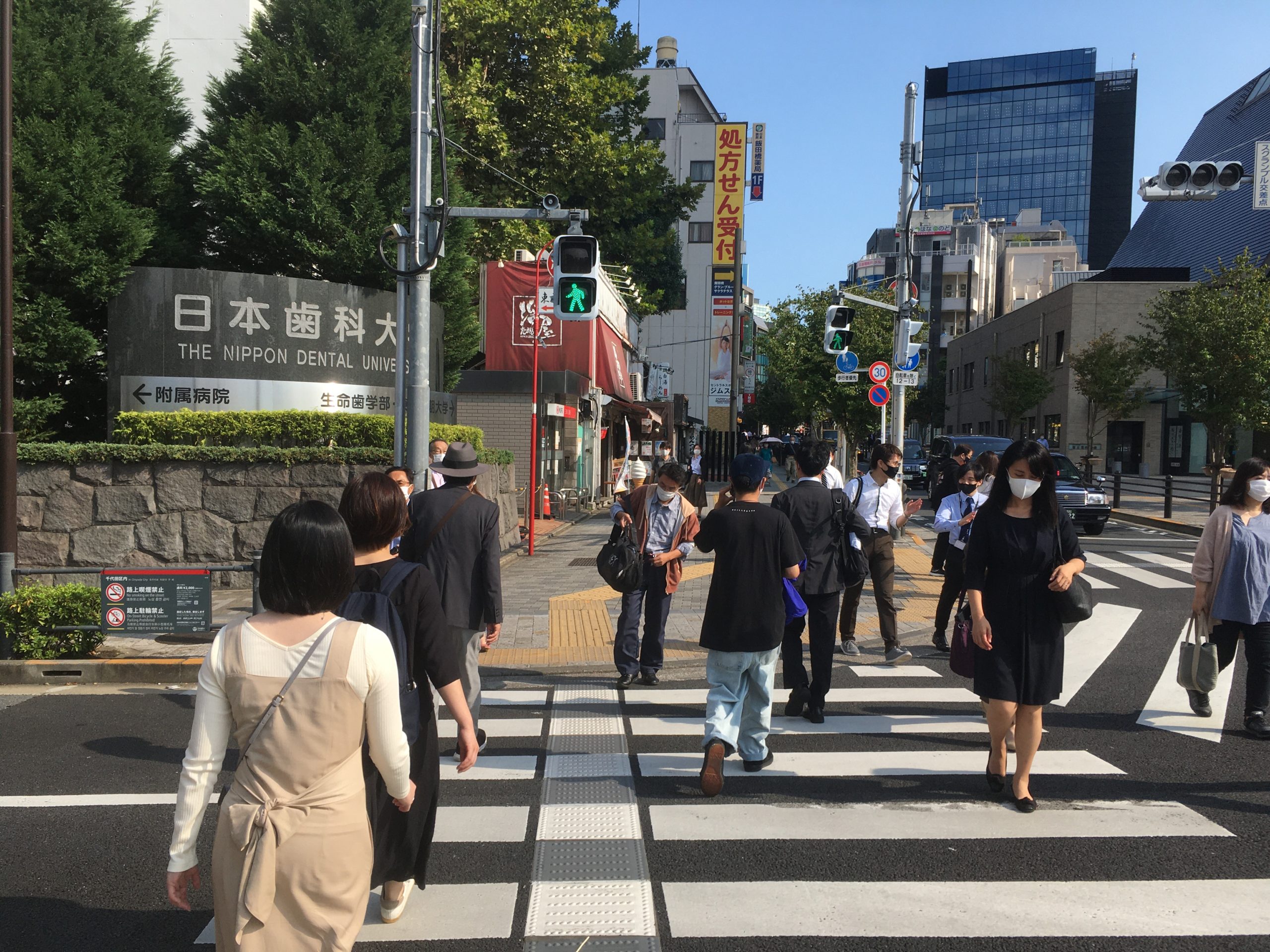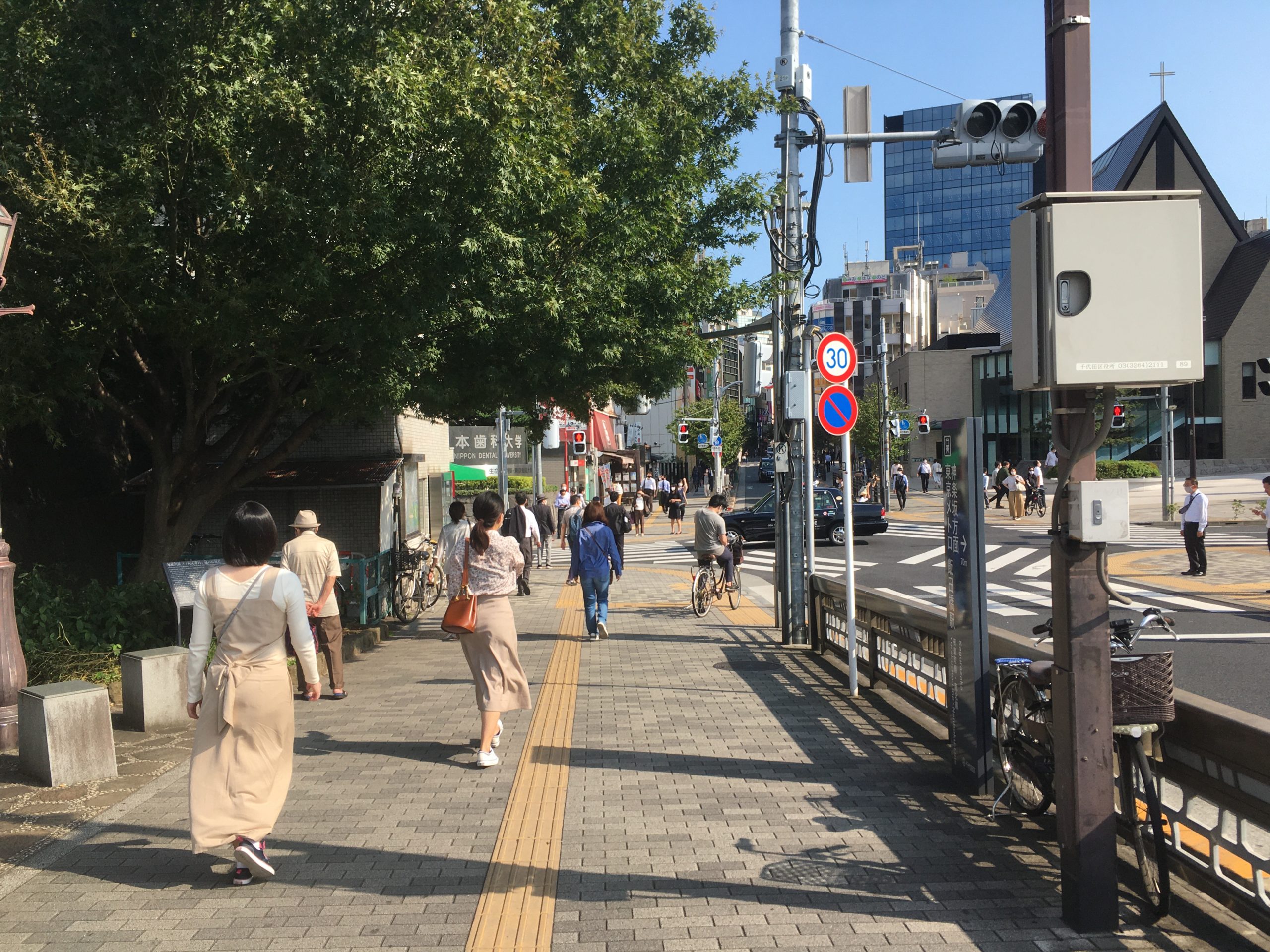 日本歯科大学の看板が見える交差点を渡りそのまま直進します。